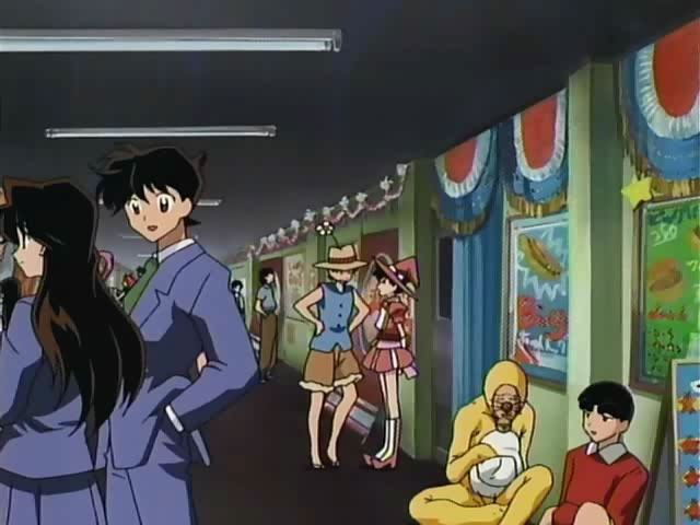 Das folgende Bild ist ein Screenshot aus der 128. Episode von „Inu Yasha“, in dem Shinichi und Ran aus „Detektiv Conan“ und noch andere Charaktere aus anderen Animes zu sehen sind. Crossover zwischen Inu Yasha und Detektiv Conan sind allerdings keine Seltenheit, da beide Mangas im selben Magazin veröffentlicht wurden.